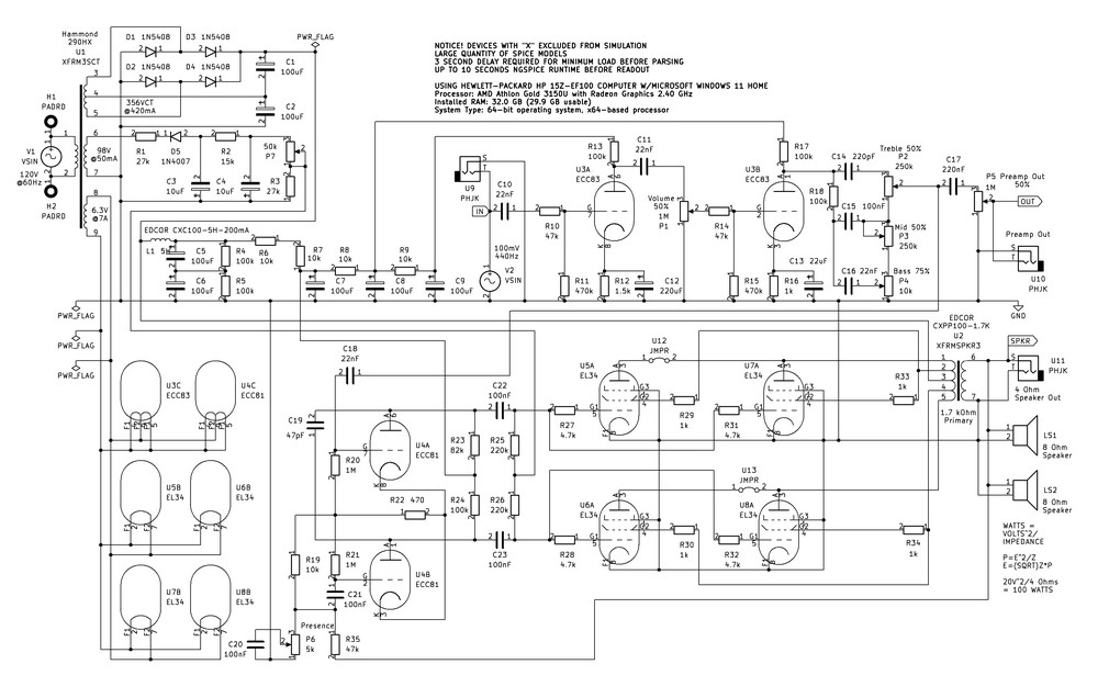 EL34 Valve/Tube Push-Pull Out 100 Watt Audio Amp Project